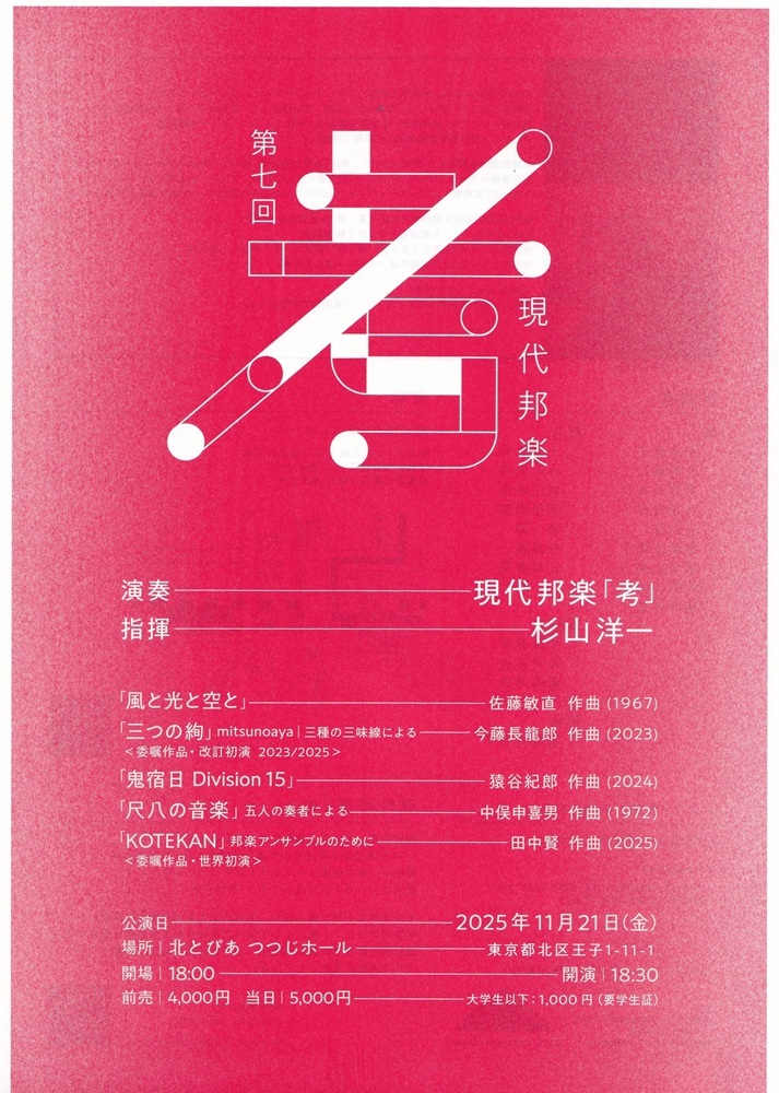 2025/11/21 『第7回 現代邦楽“考”』に出演いたします