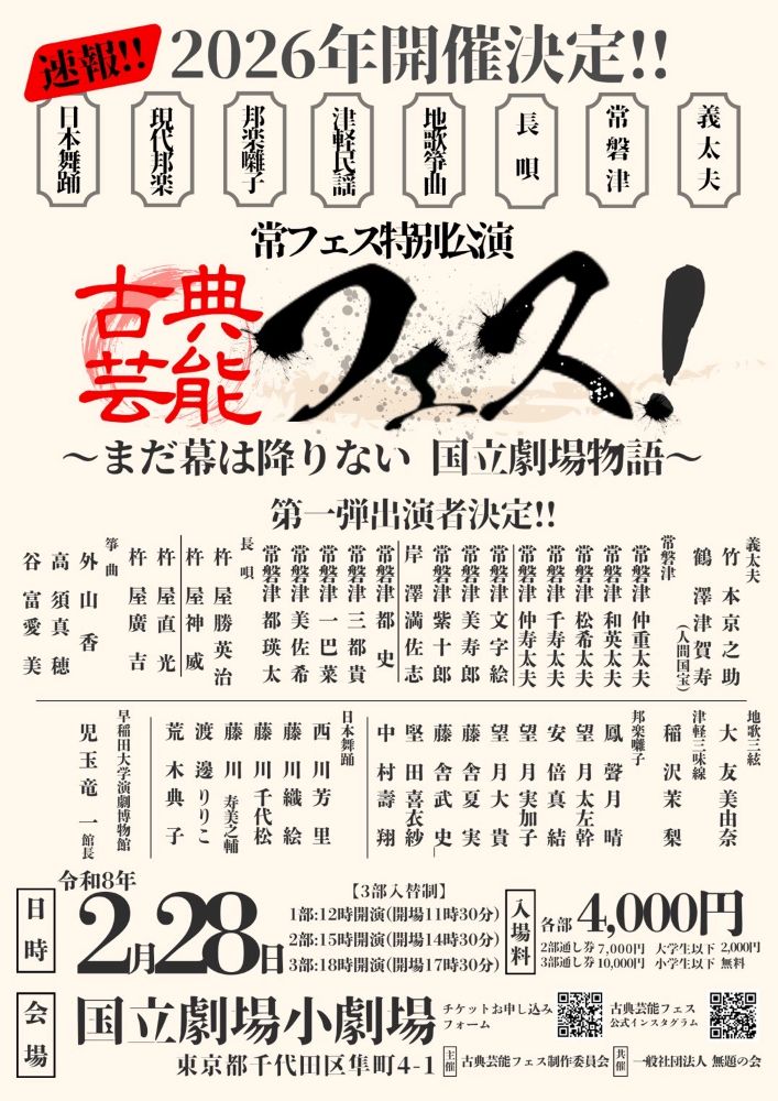 2026/2/28 「古典芸能フェス」に出演いたします