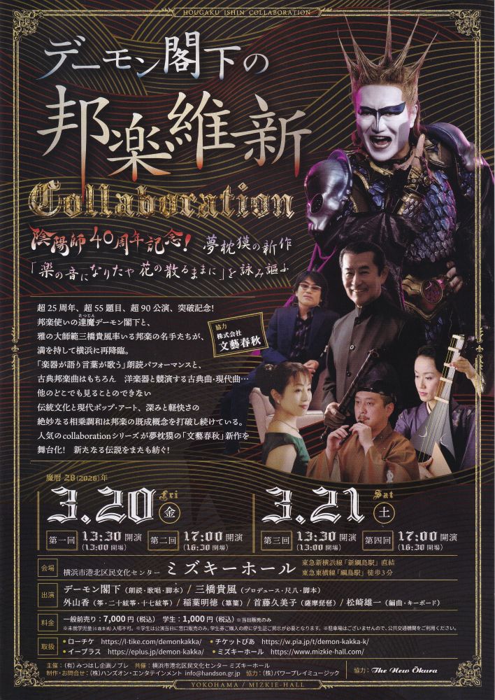 2026/3/20,21 「デーモン閣下の邦楽維新Collaboration〜陰陽師40周年記念!夢枕獏の新作